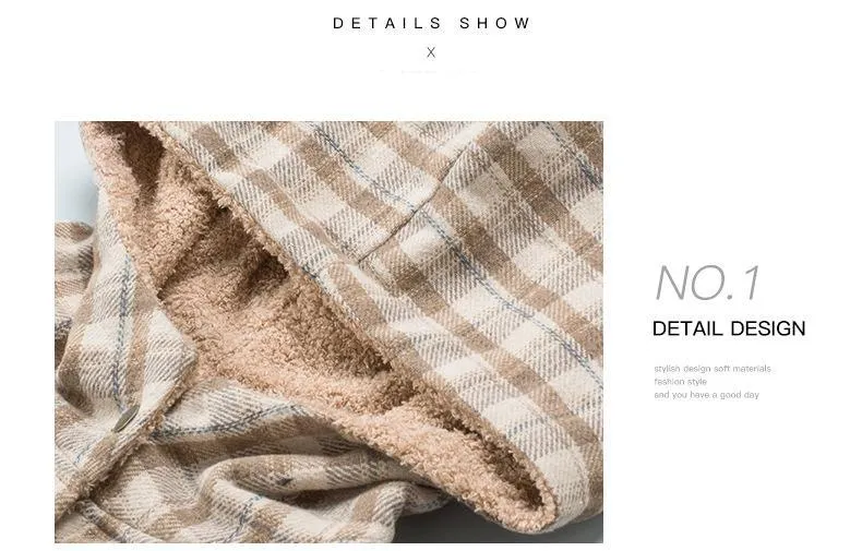 Plaid Jacket Hooded Coat Flannel Hoodies Casual Mufti Clothes Autumn Winter New Style Retro