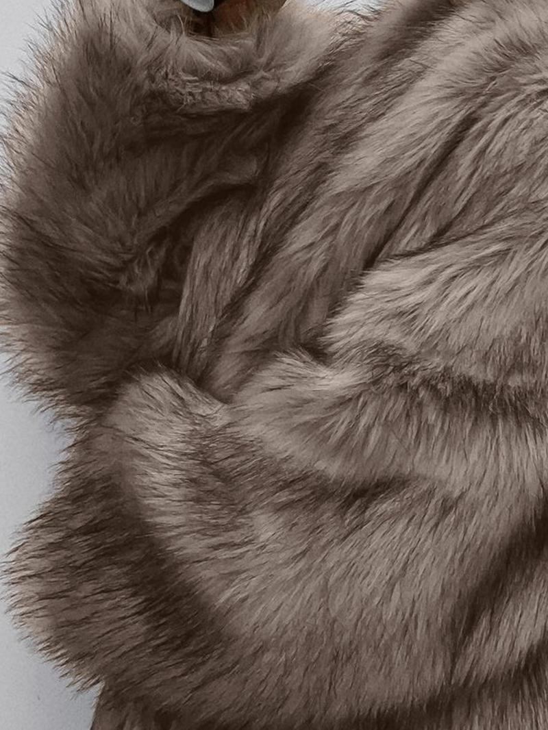 Solid Color Open Front Faux Fur Coat, Elegant Long Sleeve Waterfall Collar Casual Outerwear for Fall